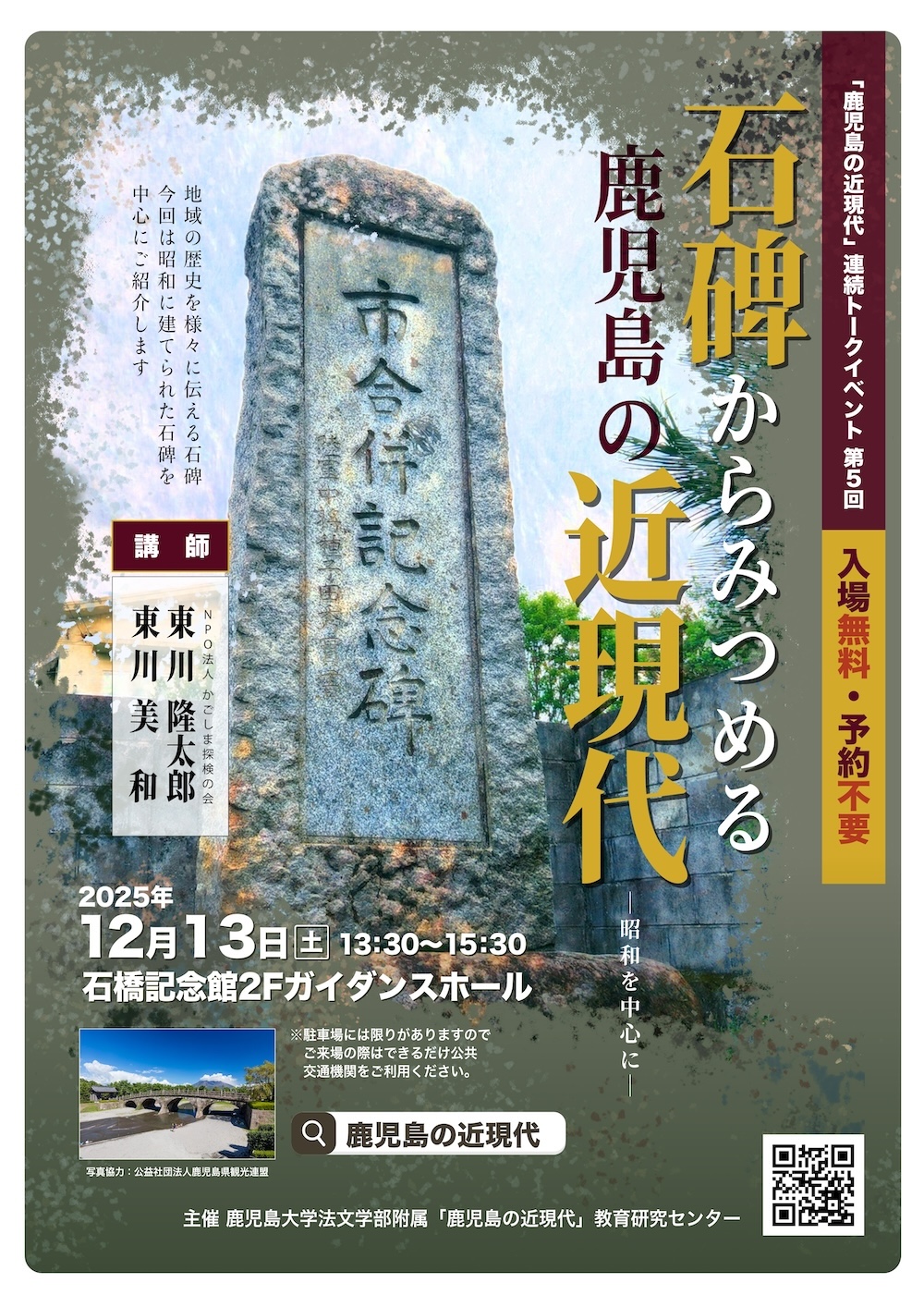 「鹿児島の近現代」教育研究センターでは、令和7年12月13日(土)石橋記念公園 石橋記念館にて、「鹿児島の近現代」連続トークイベント「#昭和100」第5回を開催します。