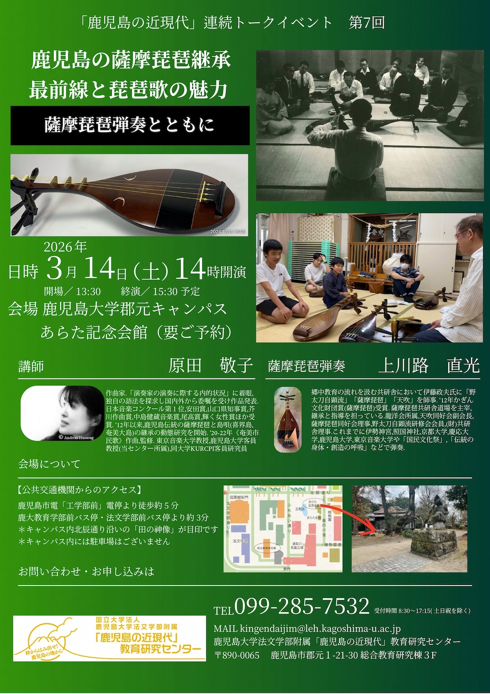 「鹿児島の近現代」連続トークイベント「#昭和100」第7回「鹿児島の薩摩琵琶継承最前線と琵琶歌の魅力」(3/14 土)開催のお知らせ